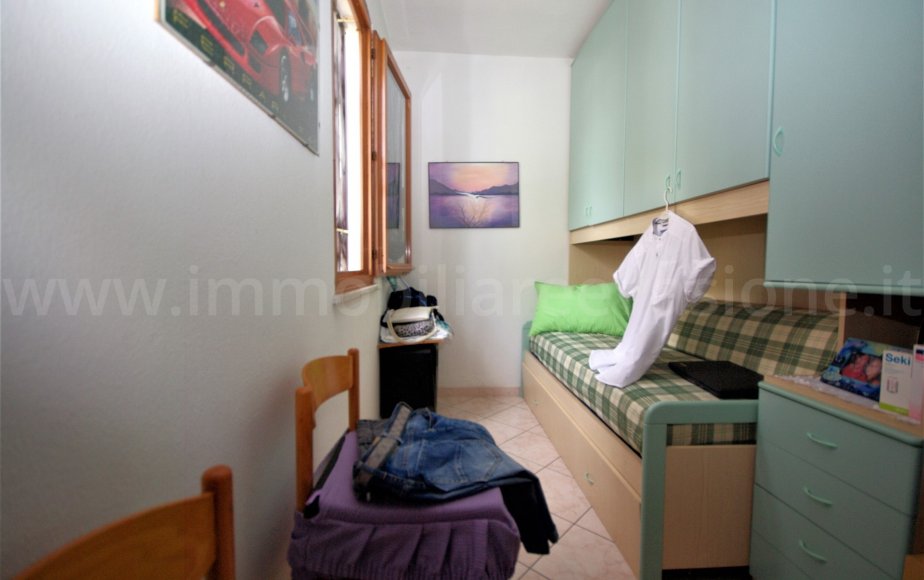 Entrando in casa vi accoglierà una gradevole zona pranzo-soggiorno con cucina angolare a vista; troverete poi il disimpegno che conduce alla zona notte, composta da una camera da letto matrimoniale, una cameretta con composizione a ponte ed un bagno accessoriato con box doccia.