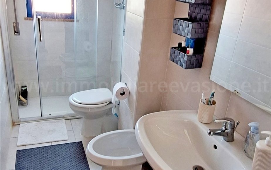 Il bagno è funzionale e dotato di un comodo box doccia.
