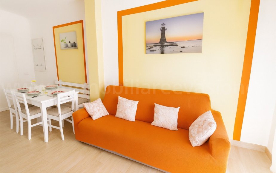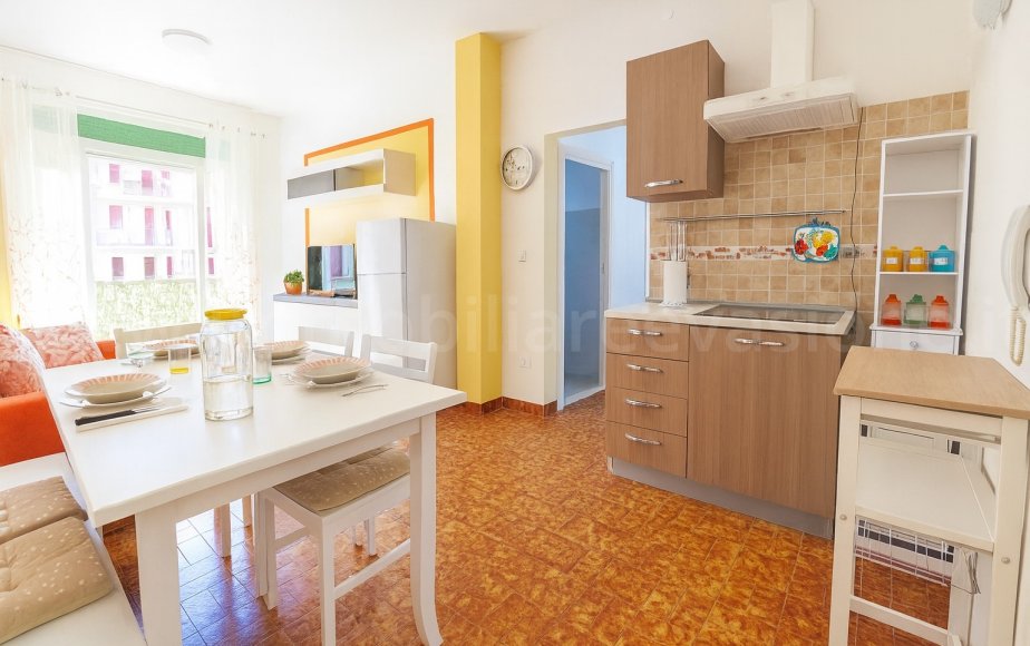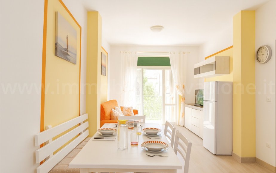 Entrando in casa vi accoglierà una zona pranzo-soggiorno moderna e colorata, con cucinotto e accesso diretto al balcone. Proseguendo troverete una piacevole camera da letto matrimoniale ed un bagno completo di comodo box doccia.