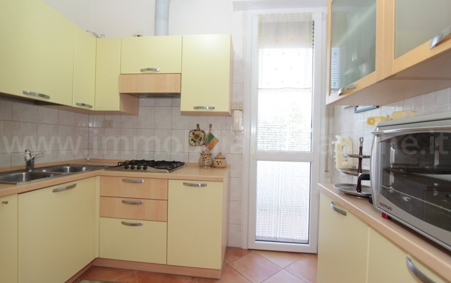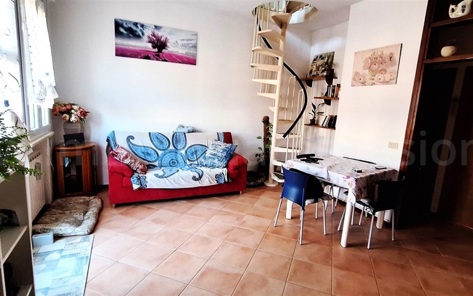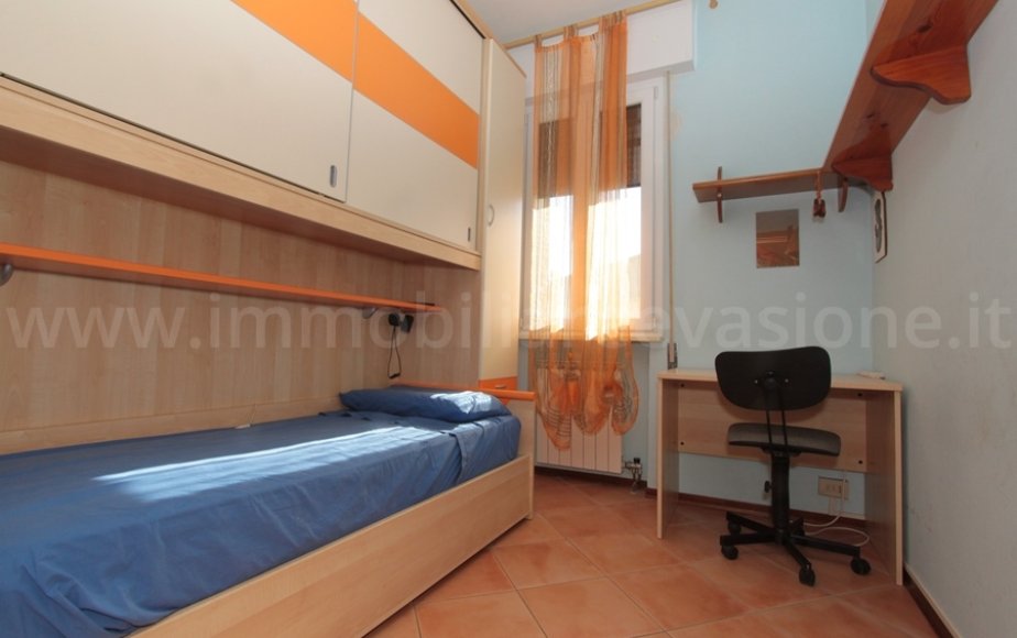AL PIANO PRIMO: ingresso su zona pranzo-soggiorno, cucinotto con affaccio sul balcone angolare, una camera da letto matrimoniale, una cameretta attualmente arredata con una composizione a ponte, ripostiglio e bagno con doccia.