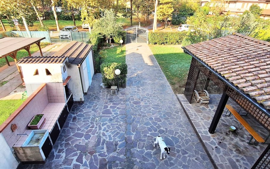 AMPIO GIARDINO DI PROPRIETA' RECINTATO, con bellissimo vialetto di ingresso pavimentato.