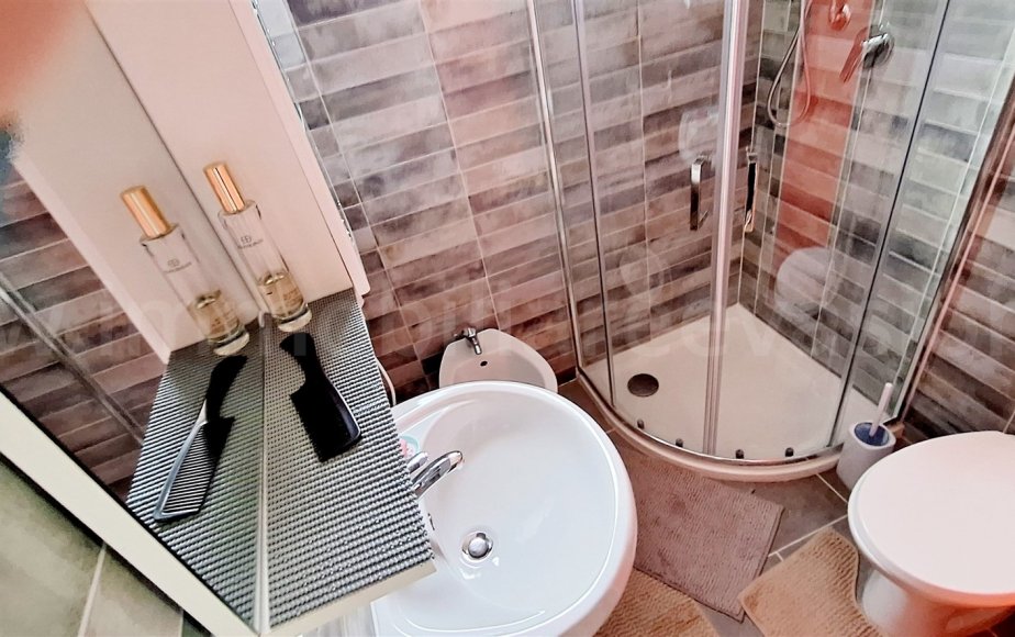 una signorile e raffinato bagno finestrato completo di box doccia.