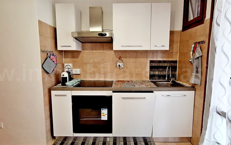 Ingresso in accogliente zona living con blocco cucina lineare a vista;